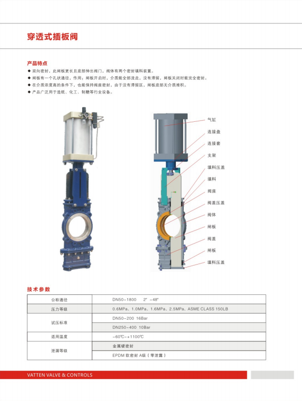 穿透式插板閥。雙向密封使閘板更長,且底部生出閥門,閥體有兩個密封填料裝置,閘板有一個孔狀通徑作用,閘板開啟時介質能全部流走。沒有滯留,閘板關閉時能完全密封。在介質濃度高的條件下,也能夠保持閥座密封。由于沒有滯留區,閘板底部無介質堆積,產品廣泛用于造紙、化工、制糖等。行業設備。
