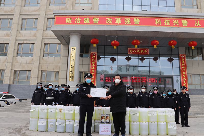 2月7日,在全國防疫物品緊張的情況下,平涼隴山工貿有限責任公司代表閆宇濤帶著對公安民警關心和關愛,來到靜寧縣公安局為防控一線的民輔警送來了90桶25公斤84消毒液和60個N95口罩。閆宇濤表示在全國上下眾志成城,團結一致抗擊疫情的關鍵時刻,靜寧縣公安局全體民輔警全警動員,舍小家顧大家,冒著嚴寒,忘我工作,夜以繼日奮戰在抗擊疫情的第一線,守護著全縣人民的生命健康安全,我對你們這種忠誠履職、堅守崗位的無私奉獻精神表示衷心的感謝,雖然我們無法在一線抗擊疫情,但也希望做一些力所能及的事情,為共戰疫情貢獻自己的一份力量。